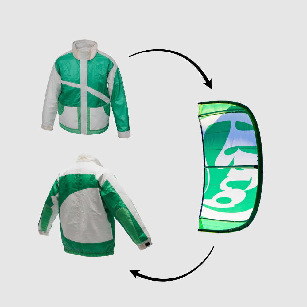 By choosing to upcycle your kite/wing, you can close the loop — transforming technical waste into a unique, personalized jacket that carries your story.