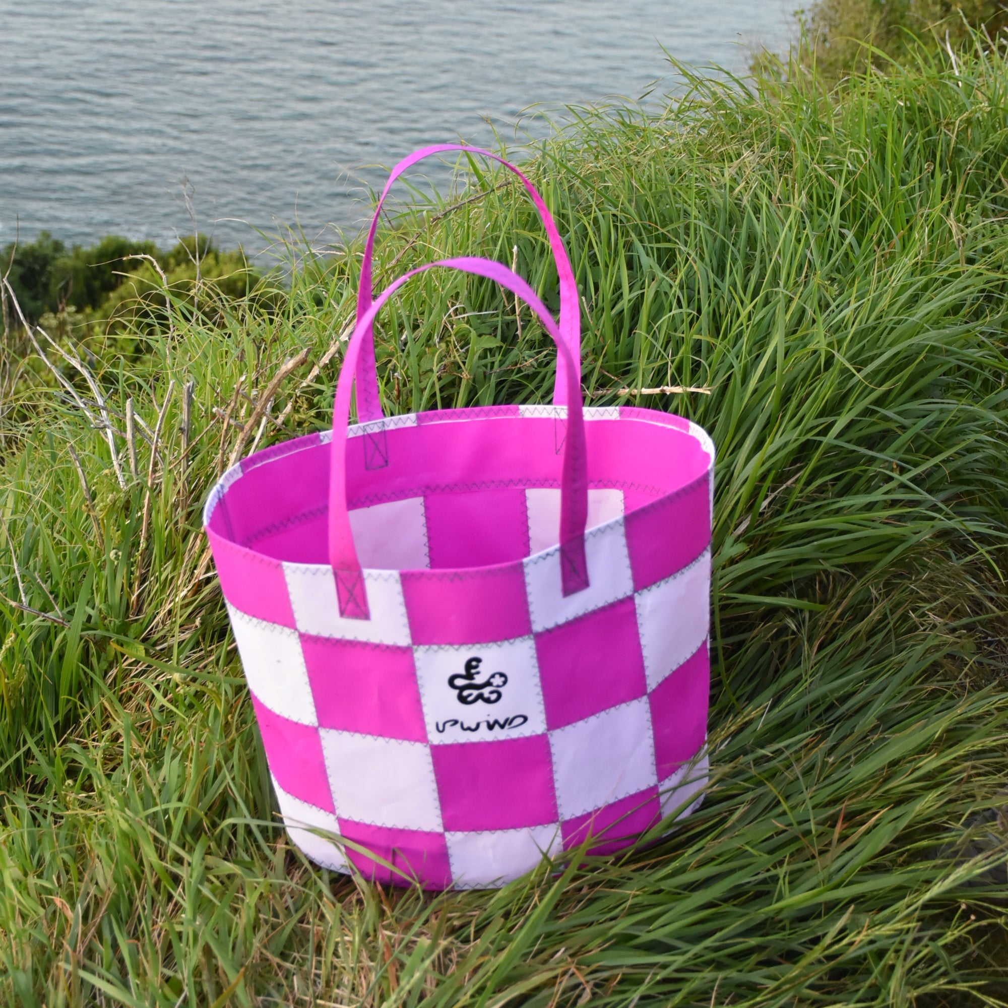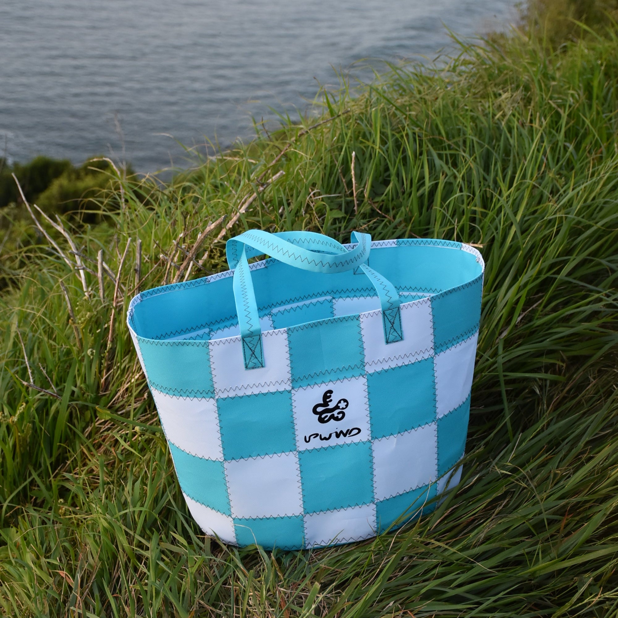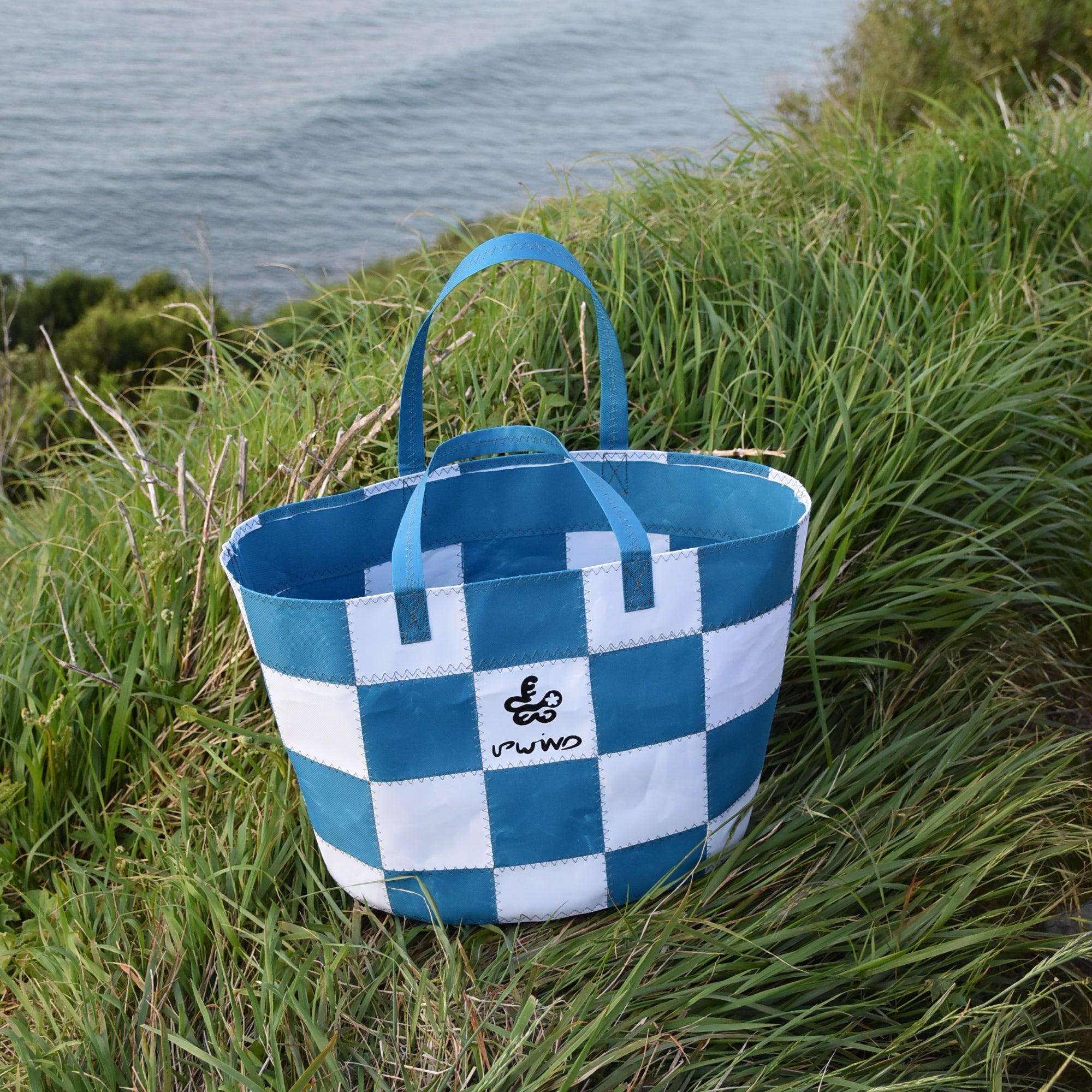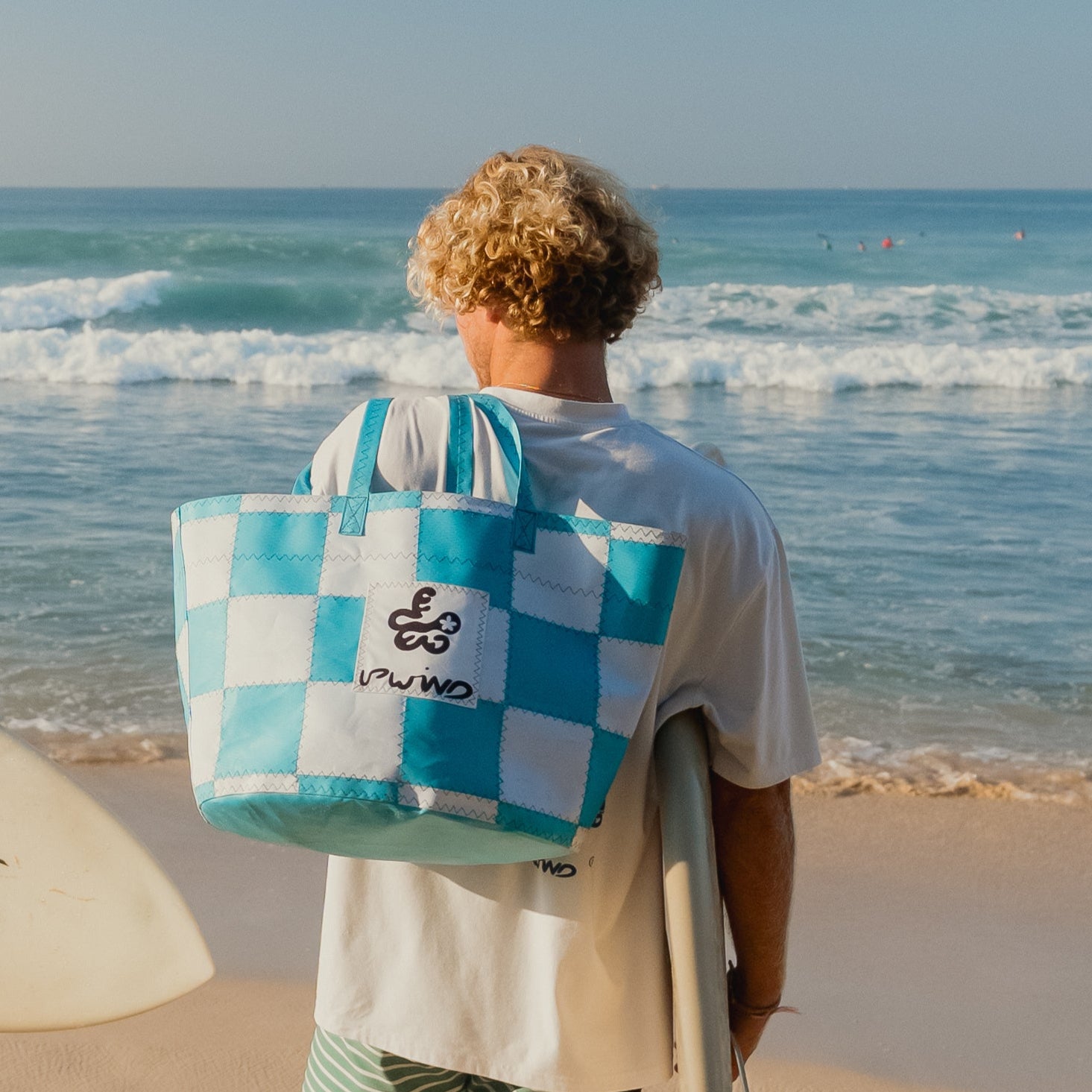 Our beach bag is made from upcycled mast sleeves from windsurfing sails. It is resistant, light, and user friendly. It can contain many things which makes it perfect for a beach day or shopping day.