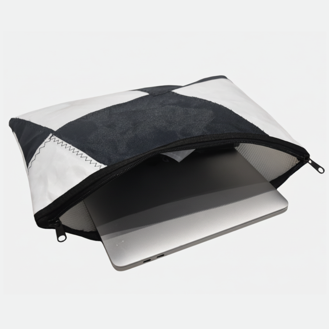 Our Laptop Case is made from recycled windsurfing sail mesh, a material known for its strength and resilience.
