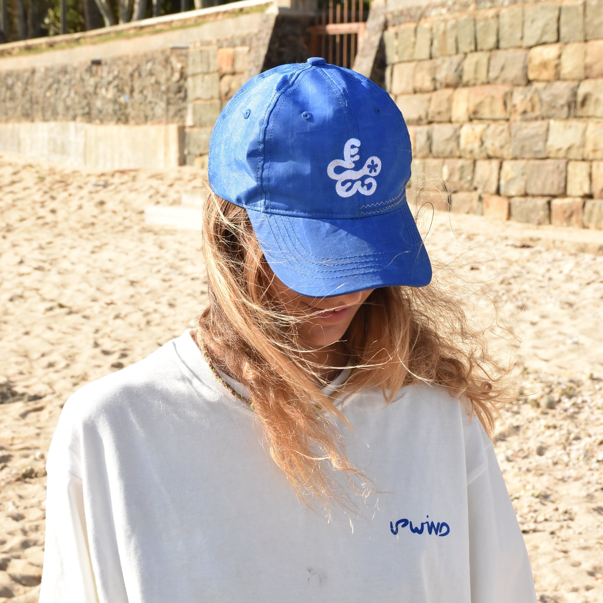 This cap is crafted from a recycled Naish Boxer kite (2016), giving each piece a rich story shaped by wind, salt, and adventure.